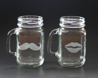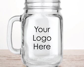 These 45 ounce Custom Mason jars with handle are the fun way to serve up your draft beers and mixed drinks. They are designed from a thick molding making this. - Laser Etched Glass Mason Jar Mug - Wedding Favor - Custom Mason Jar Mug LaserArtists 3226 CA1550 Custom Mason Jar Tumblers.